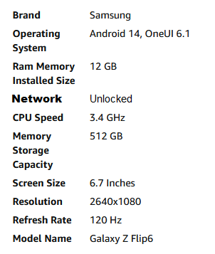 Samsung Galaxy Z Flip6, 512GB Unlocked Android Smartphone
